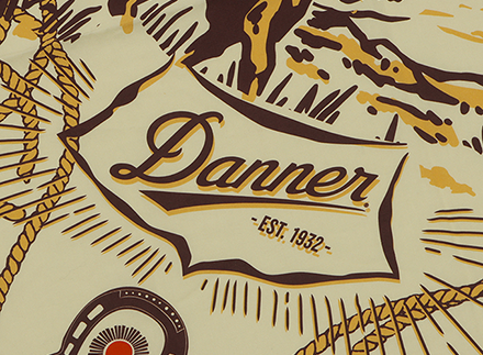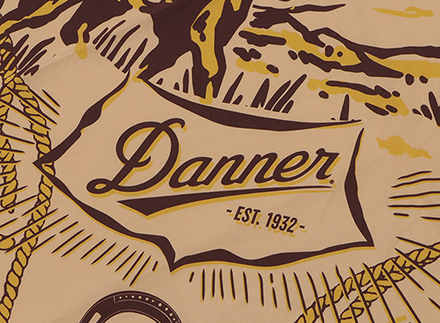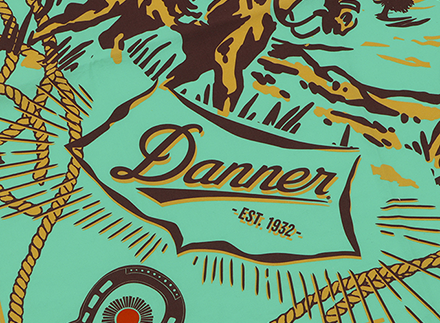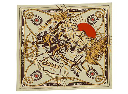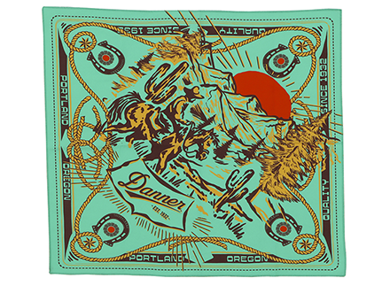 西部開拓時代をイメージさせる、DANNERオリジナルのグラフィックバンダナ。